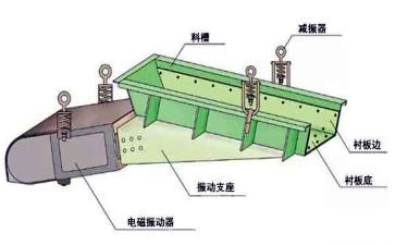 在負半周期內(nèi),線圈中無電流通過,電磁力消失,銜鐵在彈簧力的作用下與電磁鐵分開,使料槽向前運動,這樣料槽就以交流電源的頻率,連續(xù)地進行往復振動。