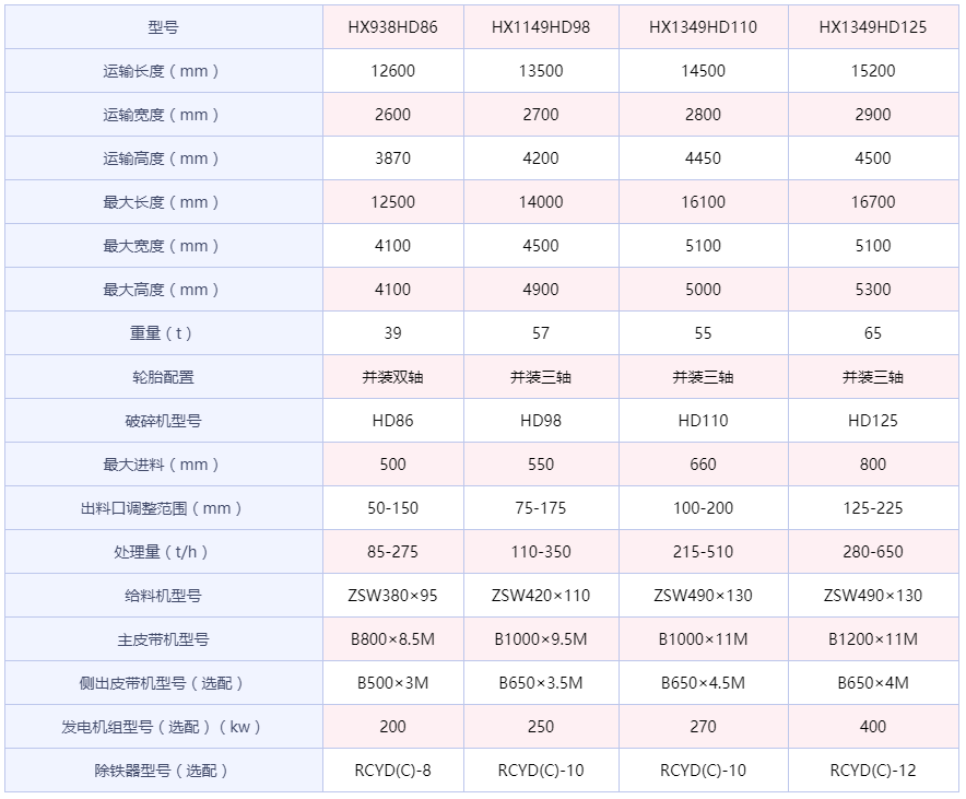 能耗低、節能環保:移動破碎機獨有的工作原理,使其在工作時能量消耗低,低碳、節能、環保